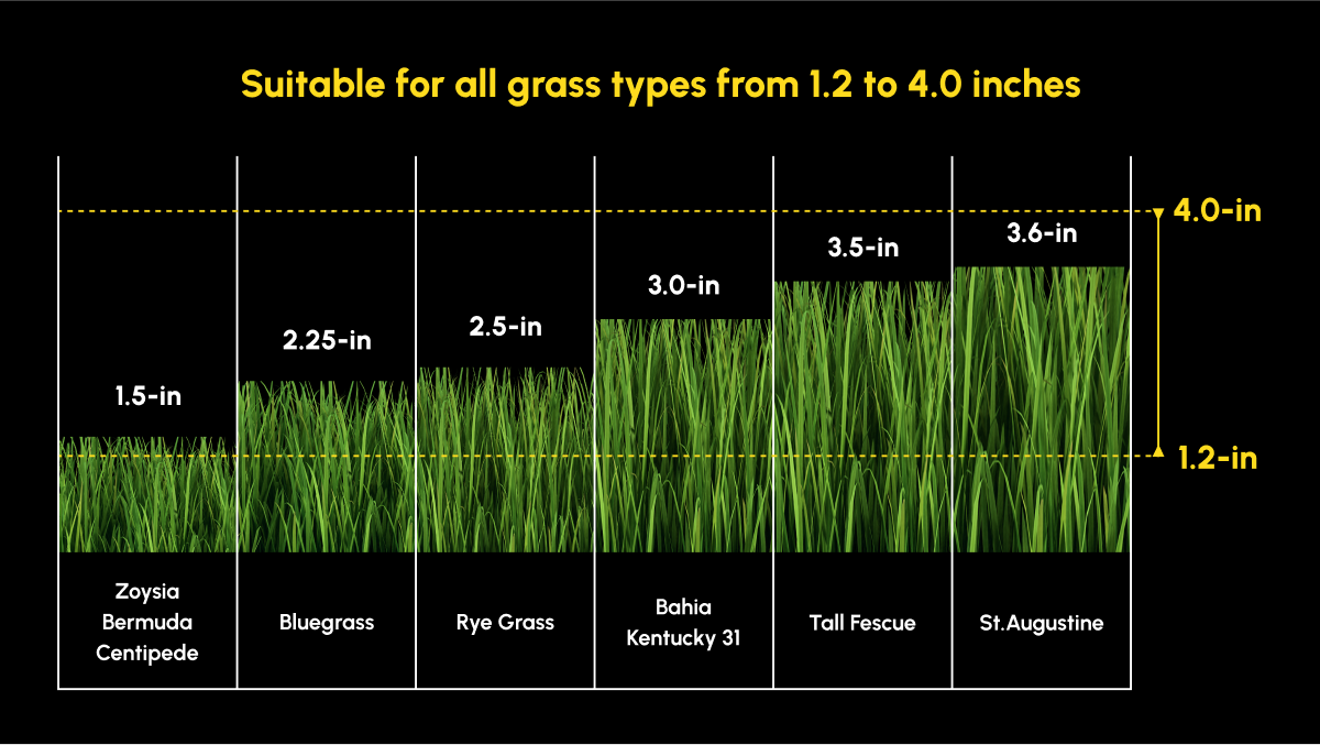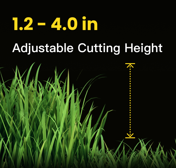 Customize the cutting height to fit different mowing areas. By adjusting the deck height, Yarbo can adjust the cutting height from 1.2 to 4 inches, allowing for personalized aesthetics.