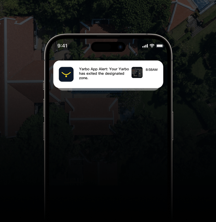 Configure geofencing in your Yarbo App to receive alerts when Yarbo is moved out of the designated area.