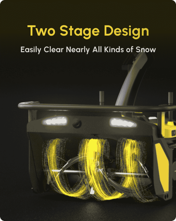 The rubber track is carefully designed to keep Yarbo Snow Blower on course even on the icy ground when it is blowing snow. Combined with powerful motors, Yarbo Snow Blower can traverse rough terrains and climb a slope of up to 36% effortlessly.Efficient Snow Cleaning